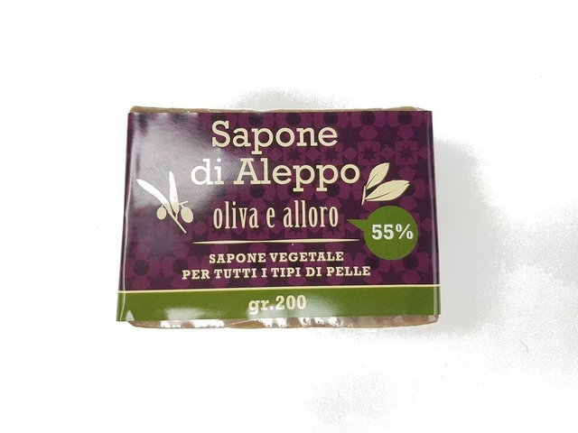 Sapone di Aleppo in formato solido con il 55% di olio d'alloro, 200 g.